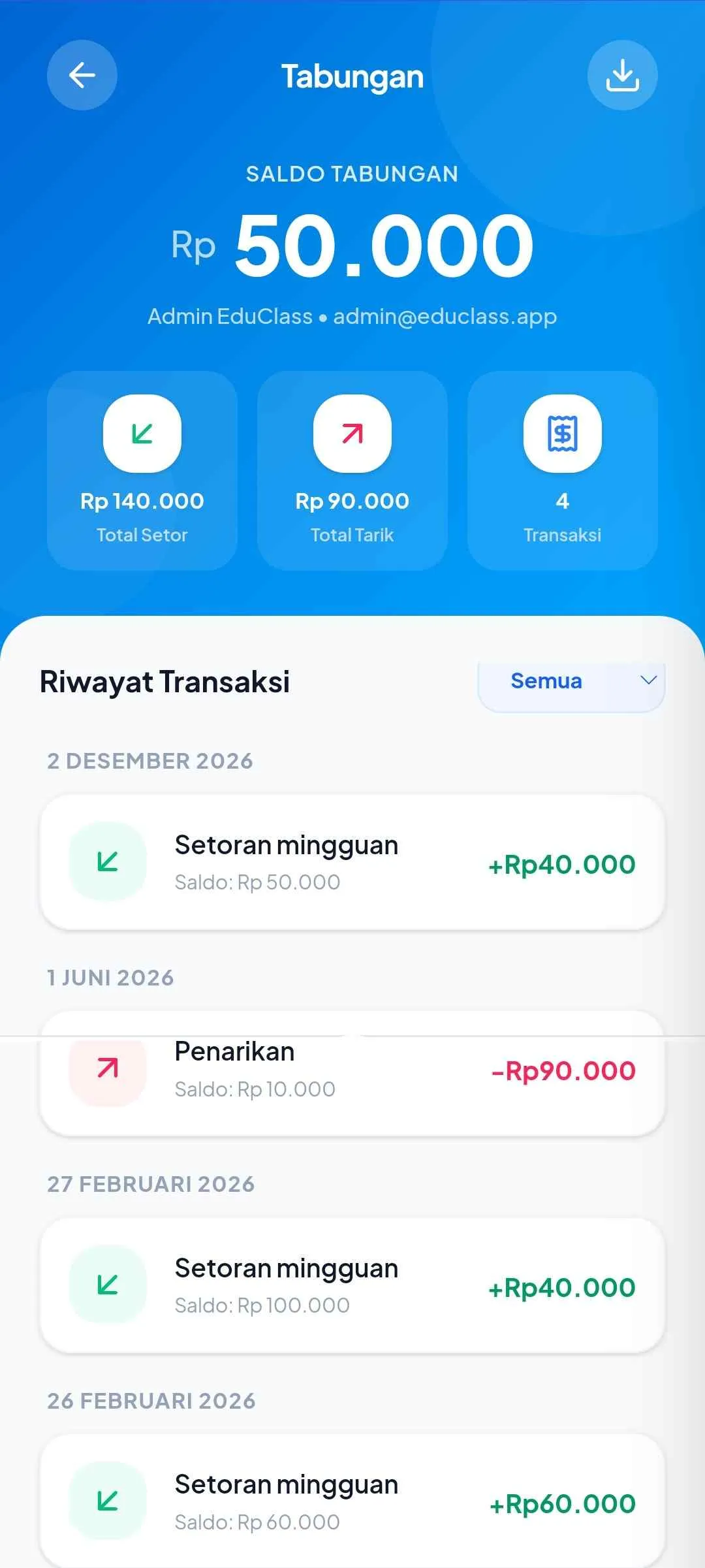 Fitur kelola keuangan seperti kas kelas, iuran maupun tabungan siswa.